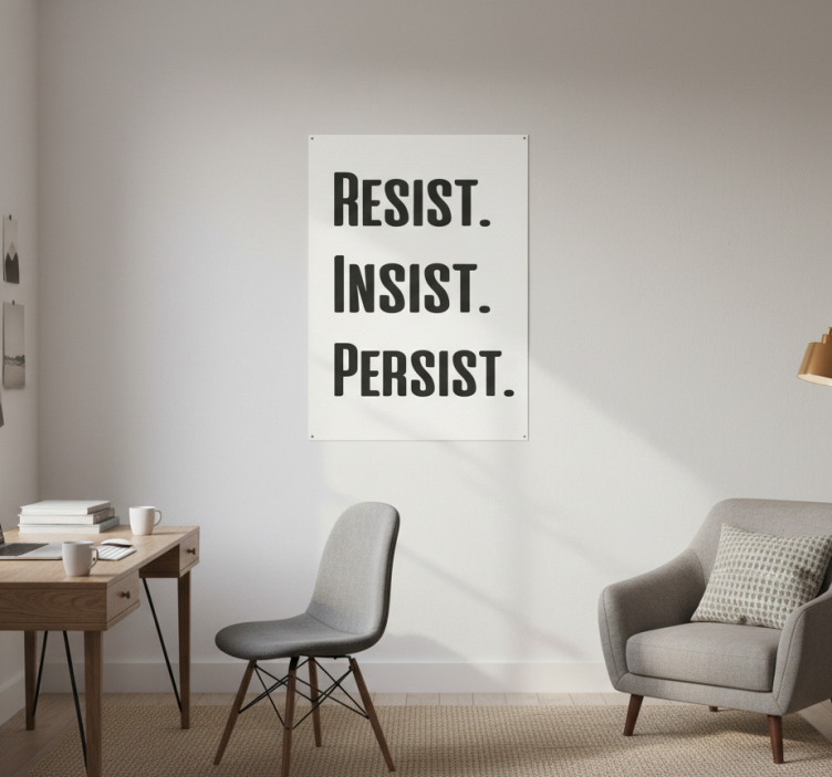 Referencia: G662Descubre nuestro Poster oficina resiste insiste persiste, una lámina decorativa que combina un gramaje de 180g/m2, ideal para carteles, con un acabado semimate que evita reflejos y una alta intensidad de color. Este diseño vibrante y motivador es perfecto para inspirar y elevar el ambiente de tu espacio de trabajo, haciendo que cada día sea una nueva oportunidad para brillar.