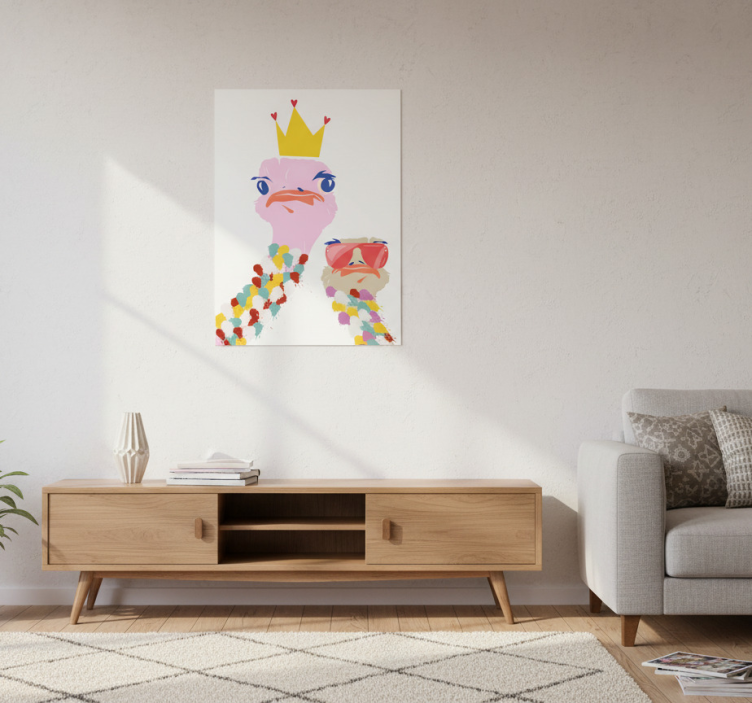 Para disfrutar de tu Poster salón poster para salón estilo artístico de avestruces coloridos, puedes utilizar cinta adhesiva de doble cara en la parte posterior, asegurando una fijación firme. Otra opción es enmarcarlo para un acabado más elegante. Utiliza chinchetas o blu-tack reutilizable para una aplicación sencilla. ¡Haz que tu espacio hable de ti!