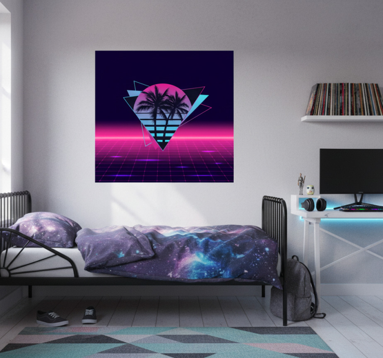 El Poster para salón palmera estilo vaporwave es perfecto para aquellos que buscan añadir un toque de frescura y originalidad a su hogar. Su diseño cautivador inspira alegría y relajación, creando un ambiente perfecto para disfrutar con amigos y familia. Al incorporar este póster en tu decoración, no solo embelleces tu espacio, sino que también invitas a la nostalgia y al buen rollo. ¡Es una elección ideal para cualquier amante del estilo moderno!