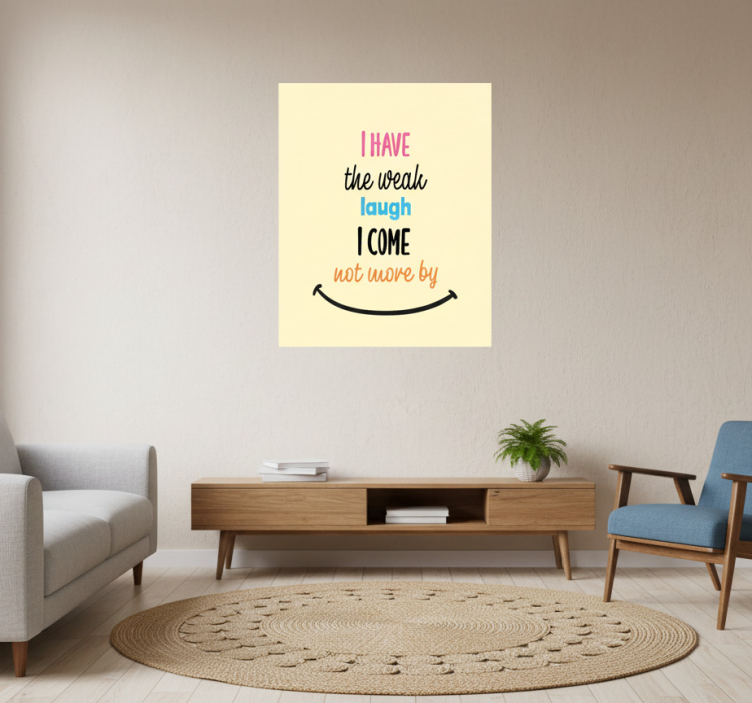 Incorporar el Poster para salón tengo la risa débil en tu decoración es una decisión inspiradora que agrega un toque único a tu ambiente. Este diseño no solo embellece tu espacio, sino que también evoca una sensación de alegría y ligereza. Imagina a tus amigos y familiares sonriendo al verlo. ¡Es la pieza perfecta para crear un hogar acogedor y lleno de energía positiva!
