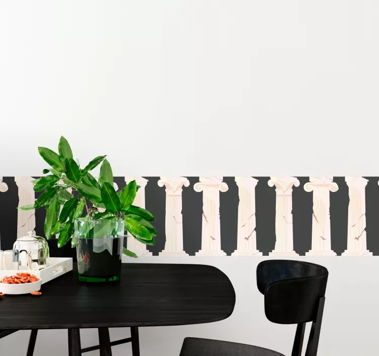 La cenefa adhesiva diseño de columnas clásicas es una pieza única que transforma cualquier espacio en un ambiente de elegancia atemporal. Su diseño refleja la grandeza de la arquitectura antigua griega, con columnas que se alzan majestuosamente sobre un fondo negro, evocando la sensación de mármol pulido. Este elemento decorativo es perfecto para quienes buscan un toque tradicional y elegante en su interior, convirtiendo las paredes en una auténtica obra de arte.