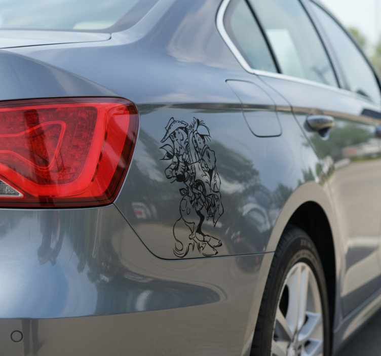 La Pegatina coche pegatina coche caballo salvaje y vaquero es la forma ideal de personalizar tu vehículo y hacerlo único. No solo le dará un toque especial a tu coche, sino que también inspirará a quienes te rodean. Imagina conducir con esta obra de arte que refleja tu pasión por la vida al aire libre. ¡Haz que tu coche sea un reflejo de tu personalidad y destaca en la carretera!