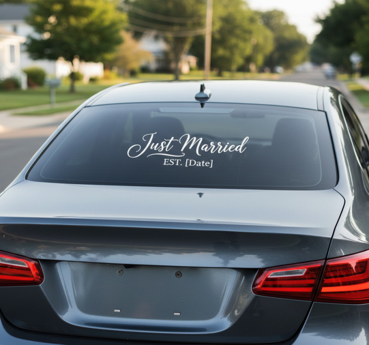 Aplicar nuestra Pegatina coche pegatina coche recién casados es muy fácil. Simplemente asegúrate de que la superficie esté limpia y seca, retira el adhesivo y colócala en el lugar deseado. ¡Listo! Tu coche estará decorado en un instante.