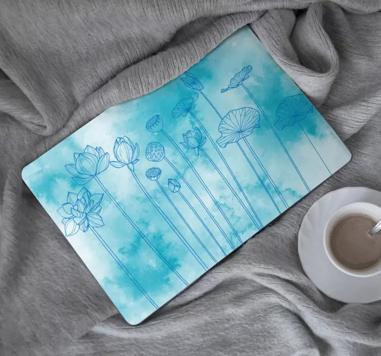 Descubre la maravillosa Pegatina para portátil composición de flor de loto, un diseño cautivador que combina tonos azules y un estilo acuarela que evoca la naturaleza. Esta flor de loto, rodeada de delicadas flores, aportará un toque floral y fresco a tu ordenador portátil, convirtiéndolo en una pieza única que refleja tu personalidad.