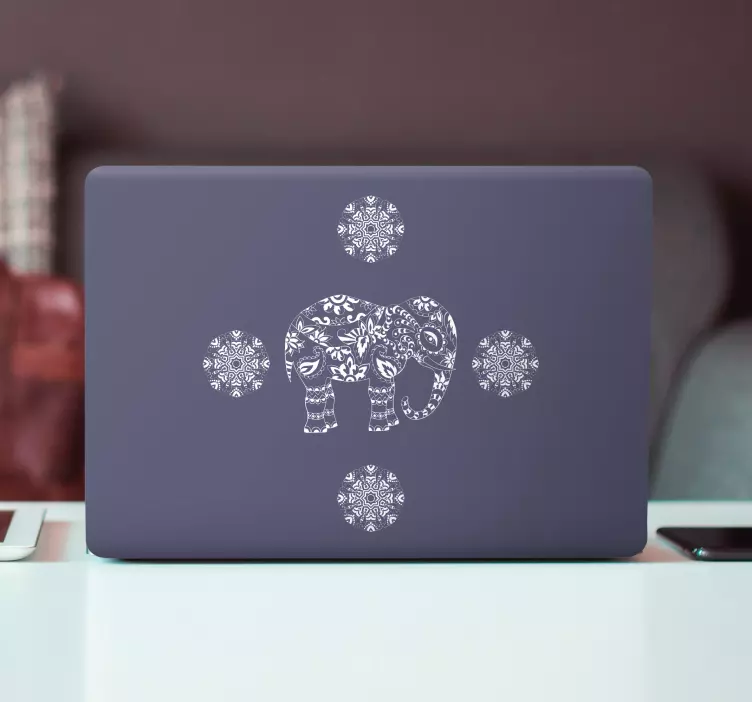 Referencia: A49562Una representación intrincada de un elefante enmarcado por patrones circulares decorativos. Este diseño combina arte con encanto, ofreciendo una personalidad única a la superficie del portátil. El elefante simboliza sabiduría y fuerza, lo que hace que esta pieza sea tanto atractiva como significativa.