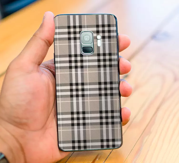 Descubre la Pegatina Samsung estilo motivo cuadros, un adhesivo que combina un elegante diseño gráfico con un estilo tartán que realza la belleza de tu teléfono. Con un patrón de cuadros en tonos beige y gris, esta pegatina transformará tu móvil en un accesorio único. Su acabado en tela proporciona una textura suave, mientras que el estampado se mantiene vibrante y lleno de vida.