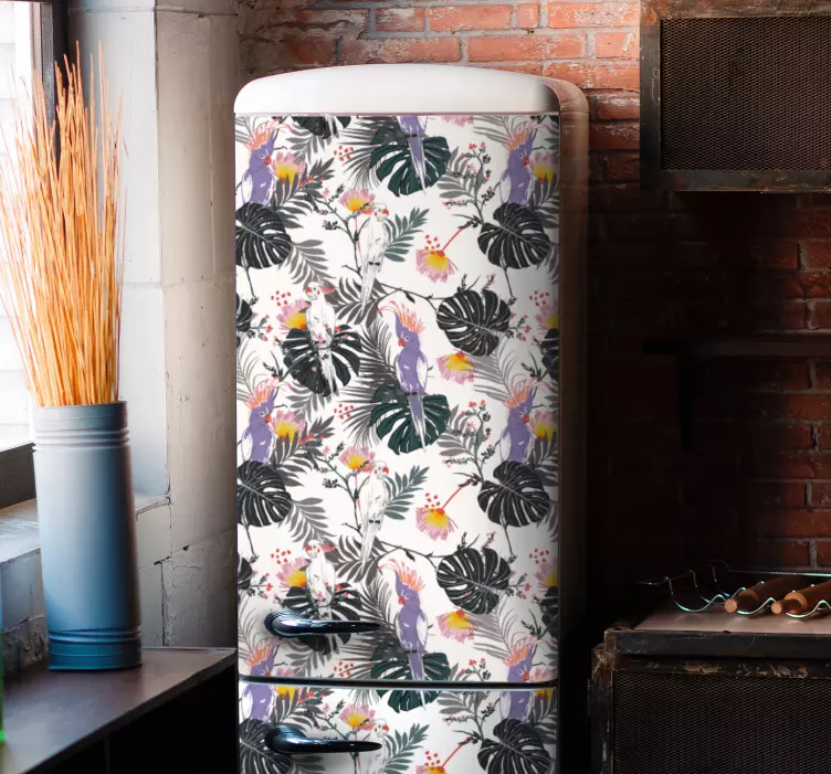 Descubre el encantador Vinilo animal de granja estampado floral tropical, una pieza decorativa que transforma cualquier espacio en un rincón lleno de vida. Con un diseño vibrante que incluye refrescantes hojas y alegres loros, este vinilo evoca la esencia de la naturaleza. Las cacatúas y el verdor se combinan en un patrón vistoso que agrega un toque tropical y floral ideal para tu refrigerador o heladera. ¡Déjate llevar por la alegría de la naturaleza en tu hogar!