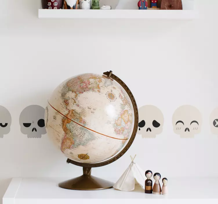 El vinilo caras de calavera juguetonas es una explosión de diversión y creatividad que transformará cualquier espacio. Con su diseño de piratas y calaveras juguetonas, este producto presenta un estilo decorativo que combina caracteres expresivos y una cenefa que le da un toque único. Su aspecto juguetón lo convierte en la elección perfecta para aquellos que desean añadir un aire festivo y audaz a sus ambientes.