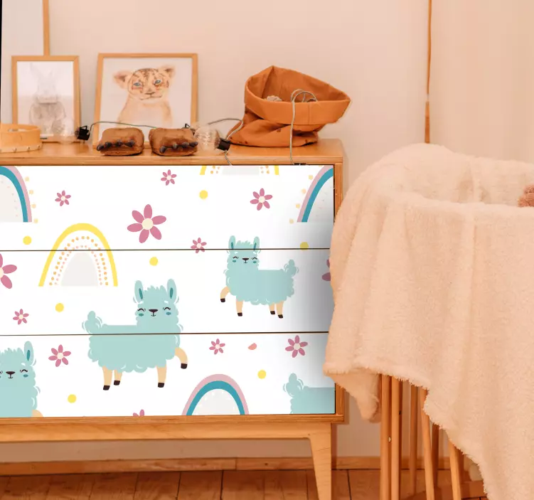 Descubre la magia del vinilo concepto llama encantadora, un diseño juguetón que ilumina cualquier espacio. Con llamas adorables y un patrón vibrante de arcoíris, este estampado está dibujado con flores vistosas que aportan alegría a tus muebles. Es la pieza ideal para dar un toque original y divertido a tu hogar.