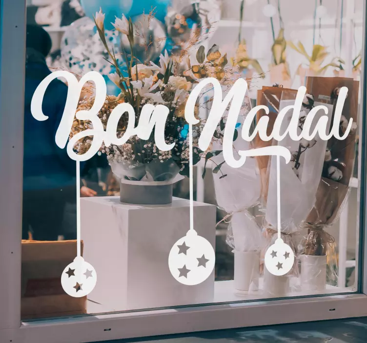 Vinilo navidad escaparate bon nadal con bola y estrellas