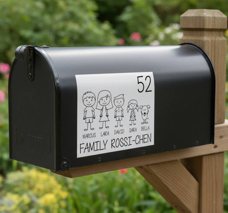 Referencia: A54944Transforma tu buzón en una expresión única de tu familia con nuestro vinilo decorativo personalizable foto familiar para buzón. Este diseño vibrante y acogedor presenta una paleta de colores alegres y una tipografía amigable que se adapta a cualquier estilo. ¡Es la manera perfecta de dar la bienvenida a tus visitas y mostrar tu personalidad!