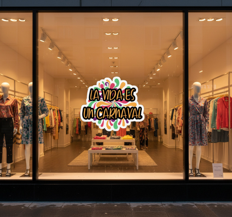 El Vinilo escaparate vinilo escaparate la vida es un carnaval es perfecto para quienes desean añadir un toque de alegría y dinamismo a su decoración. No solo embellece cualquier espacio, sino que también invita a la creatividad y la diversión. La vida es un carnaval y este vinilo es la representación perfecta de ello, capturando la esencia festiva y colorida que todos amamos. Es ideal para escaparates, habitaciones o cualquier lugar donde quieras transmitir buen ánimo.