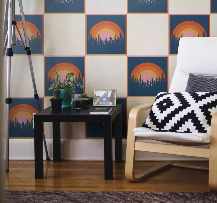 Transforma tu espacio con el vinilo escena de bosque al atardecer, una obra de arte que captura la belleza de la naturaleza. Este diseño representa un atardecer radiante, donde el sol se oculta detrás de un frondoso bosque, creando un paisaje que evoca tranquilidad y serenidad. Con colores vibrantes que adornan los azulejos del entorno, este vinilo añade un toque de magia a cualquier habitación.