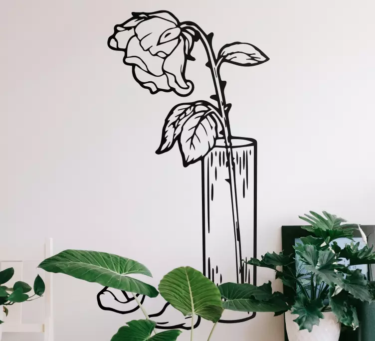 Descubre el encantador vinilo flores composición de rosas elegantes, un diseño que transforma cualquier espacio interior con su representación gráfica de un vaso de vidrio que contiene rosas secas, creando una atmósfera floral y minimalista. Esta obra maestra visual es perfecta para quienes buscan una decoración que hable de elegancia y sofisticación.