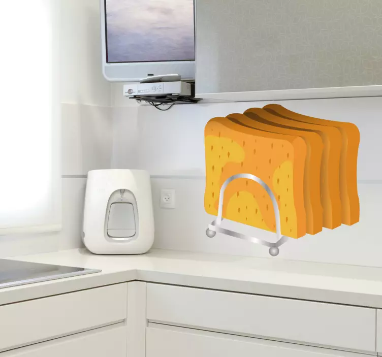 El vinilo gastronomía soporte para tostadas es una obra de arte visual que transforma tu cocina en un espacio acogedor y divertido. Con ilustraciones que representan pan de molde, brindis y deliciosos alimentos, este diseño cautivador presenta rebanadas que evocan la calidez de un hogar donde la cocina es el corazón. Sus utensilios y el atractivo titular añaden un toque encantador, perfecto para los amantes de la gastronomía que buscan una decoración única.
