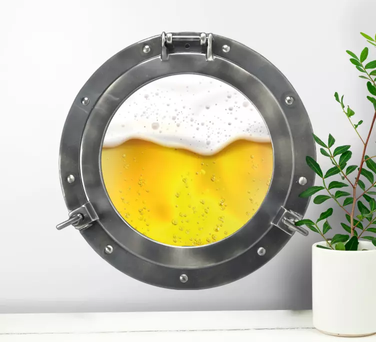 Referencia: A49056Una representación creativa que muestra un porthole lleno de una refrescante bebida dorada. El diseño captura la esencia de una atmósfera animada, haciéndolo perfecto para cocinas o bares. La espuma en la parte superior y las burbujas brillantes aportan un toque de emoción a cualquier espacio.