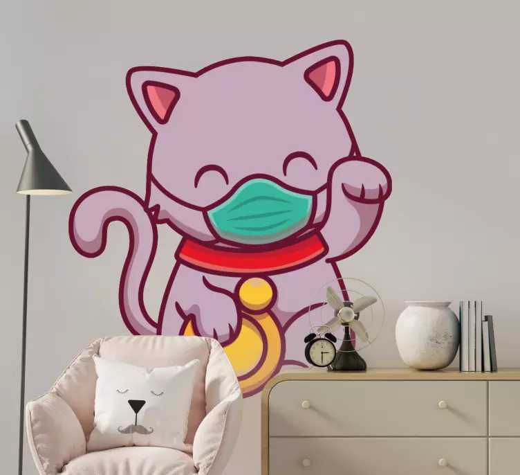 Vinilo gato feliz con máscara