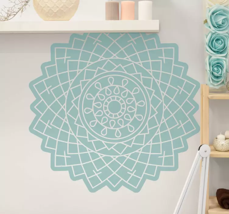 El vinilo geométrico elemento geométrico intrincado presenta un diseño que fusiona mandalas, elementos étnicos y ornamentales, creando una simetría visual que atrae la atención. Su estética moderna, rica en detalles decorativos, lo convierte en una opción perfecta para quienes buscan añadir un toque distintivo a su espacio. Cada trazo de este diseño geométrico cuenta una historia, llenando tus paredes de arte y personalidad.