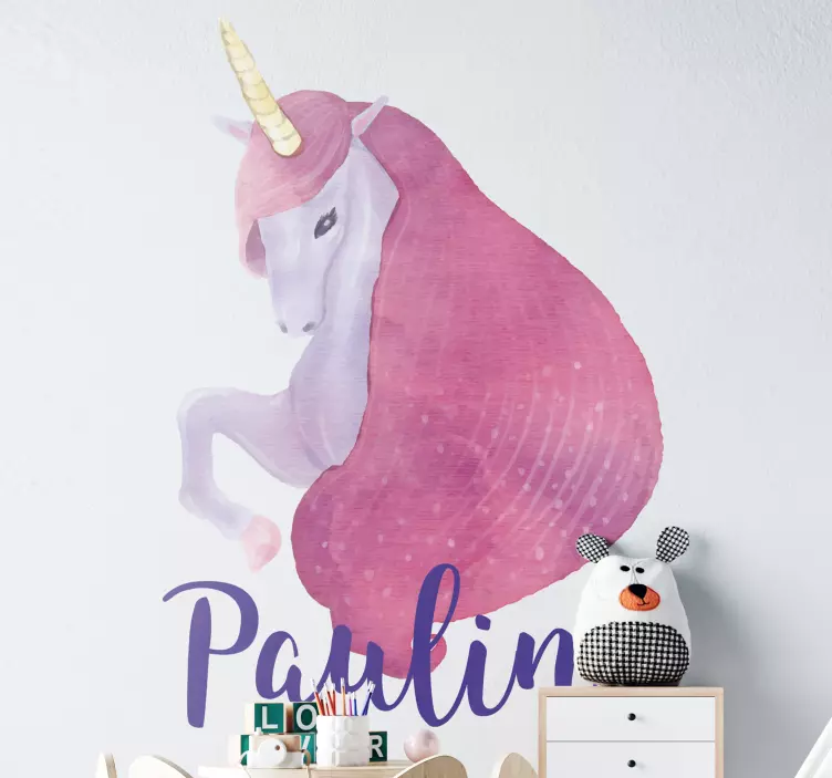 Descubre la magia del vinilo infantil diseño de unicornio, un encantador arte decorativo que agrega un toque juguetón y vistoso a la habitación de tus pequeños. Este diseño único en acuarela presenta un adorable unicornio que inspira sueños y fantasías. Además, puedes personalizarlo con el nombre de tu hijo, haciendo que cada rincón sea especial y único. ¡Haz que cada día en su espacio sea un motivo de alegría!