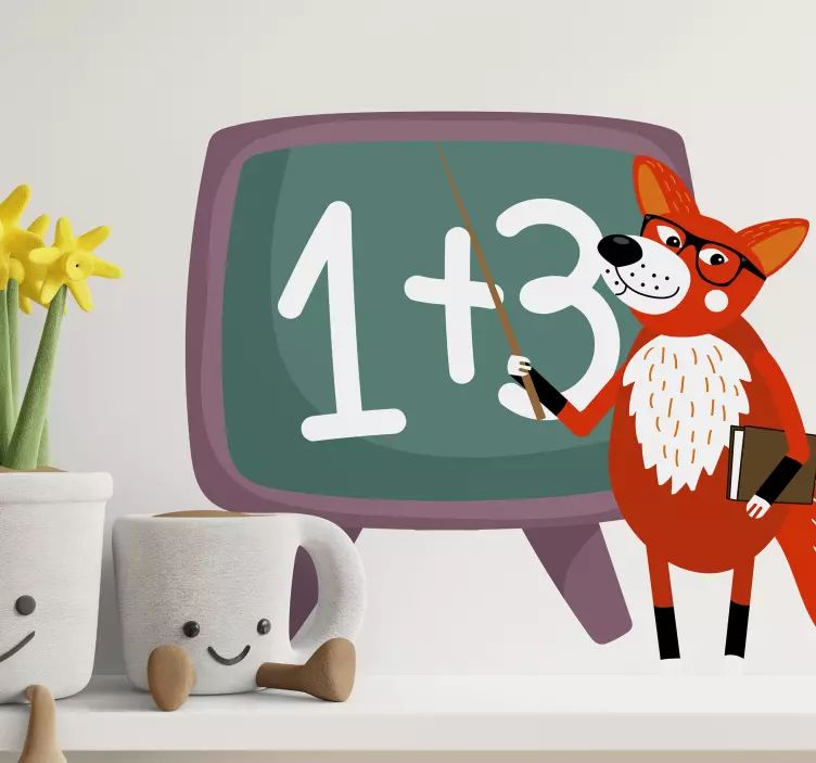 Descubre la magia del Vinilo infantil zorro juguetón enseñando, un diseño cautivador que combina la diversión de los cómics con un adorable zorro que actúa como profesor en una clase de Matemáticas. Este encantador animal salvaje transforma cualquier habitación de los niños en un espacio educativo y lleno de alegría. Con un estilo de dibujos animados y personajes interactivos, este vinilo es perfecto para inspirar la curiosidad y el aprendizaje en los más pequeños.