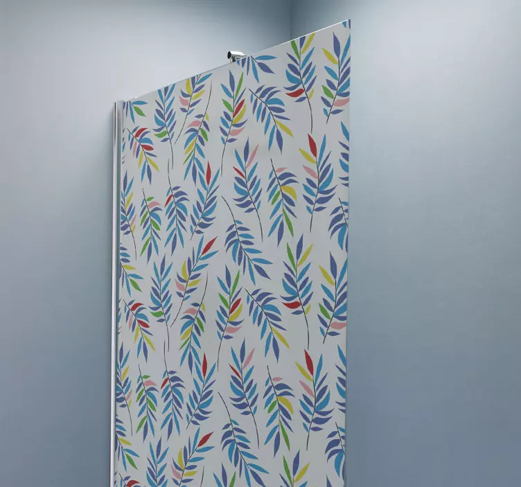 Transforma tu baño en un oasis de naturaleza con el Vinilo mampara ducha patrón de hojas vivas. Este diseño gráfico destaca por su hermoso estampado de hojas en vibrantes colores que evocan la frescura de un jardín. El patrón floral, vistoso y lleno de vida, no solo embellece tu mampara de ducha, sino que también crea un ambiente relajante y acogedor.