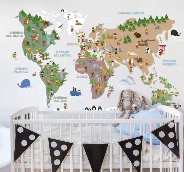 Vinilo mapamundi culturas del mundo infantil