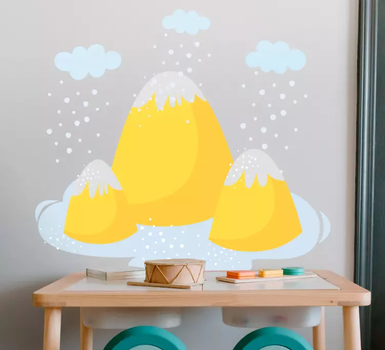 Descubre el asombroso Vinilo naturaleza picos amarillos de montaña, una ilustración vibrante que captura la esencia de la naturaleza en su máxima expresión. Con tonalidades de amarillo brillando sobre montañas majestuosas, rodeadas de nubes suaves y un toque de nieve, este diseño caprichoso transformará cualquier espacio en un refugio inspirador. ¡Deja que el aire fresco de las montañas invada tu hogar!