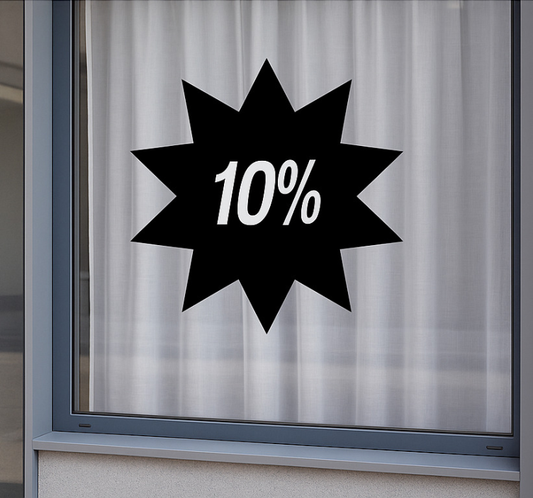 Referencia: A54344Descubre nuestro vinilo oferta descuento individual estrella, un adhesivo llamativo que combina un acabado satinado que evita reflejos con una excelente intensidad de color. Este diseño gráfico es ideal para cualquier espacio, ya que captura la atención de forma elegante y vibrante. Su facilidad de limpieza con un paño húmedo y un poco de jabón neutro lo convierte en una opción práctica y atractiva para tus promociones.