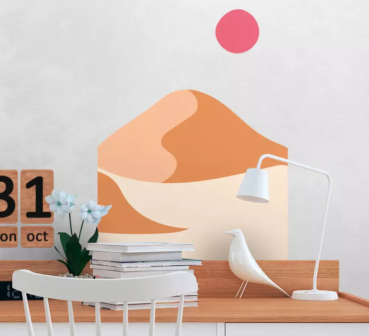 Descubre la belleza del vinilo ornamental dunas de arena abstractas, una ilustración que fusiona la majestuosidad de las montañas con la calidez del sol y la serenidad de la naturaleza. Este diseño minimalista evoca la esencia de las dunas de arena, creando un ambiente único y acogedor en cualquier espacio. Con su estilo abstracto, cada observador se verá transportado a un paisaje soñador, ideal para aquellos que aman la simplicidad y la elegancia.