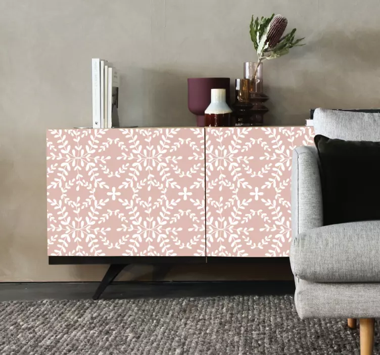 Descubre el encantador vinilo ornamental motivo de hojas elaboradas, un diseño que combina la elegancia del rosa y rosado con un patrón de hojas muy atractivo. Este vinilo ornamental es perfecto para dar un toque floral y moderno a cualquier mueble, creando un ambiente acogedor y chic con sus tonos suaves y abstractos.
