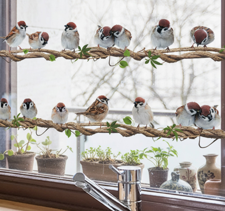 Aplicar el vinilo para cristal ventana gorriones en ramas es sencillo. Solo necesitas limpiar bien la superficie y alinear el adhesivo cuidadosamente para una instalación perfecta. ¡Transforma tu ventana en un instante!