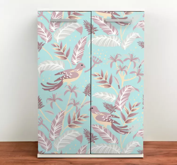 Descubre el encantador Vinilo para mueble emblema avícola botánico, una pieza única que iluminará tus espacios con su vibrante diseño. Este vinilo presenta un hermoso patrón lleno de aves, loros y una exuberante flora y fauna tropical. Sus colores pastel evocan una sensación de frescura y alegría, convirtiendo cualquier mueble en una obra de arte decorativa que celebra la naturaleza en su máxima expresión. ¡Un estampado perfecto para dar un toque exótico y floral a tu hogar!