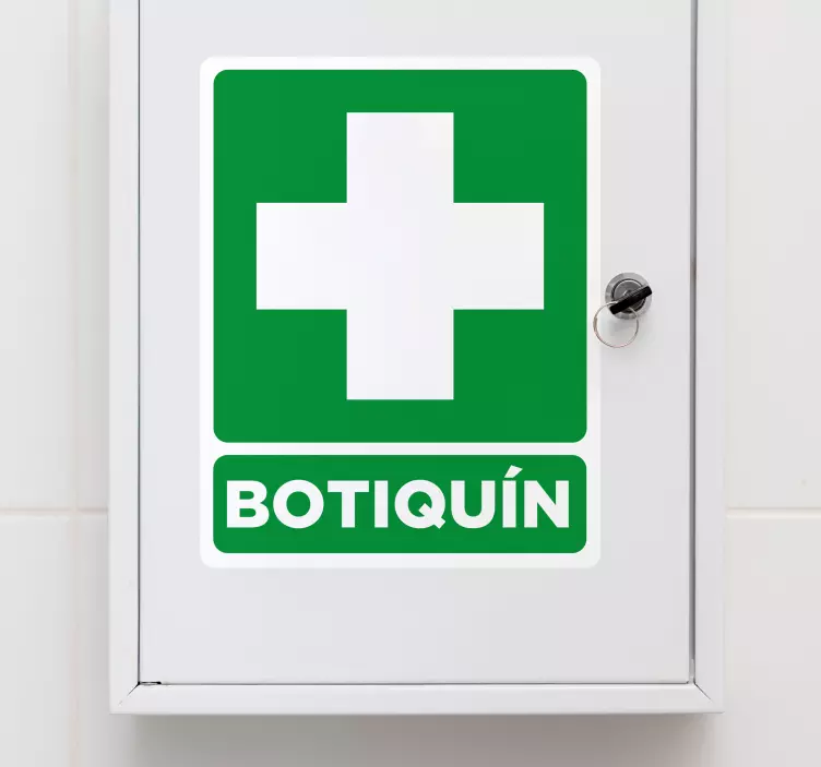 Muy útil vinilo de mueble con la señal de la cruz verde y la palabra botiquín