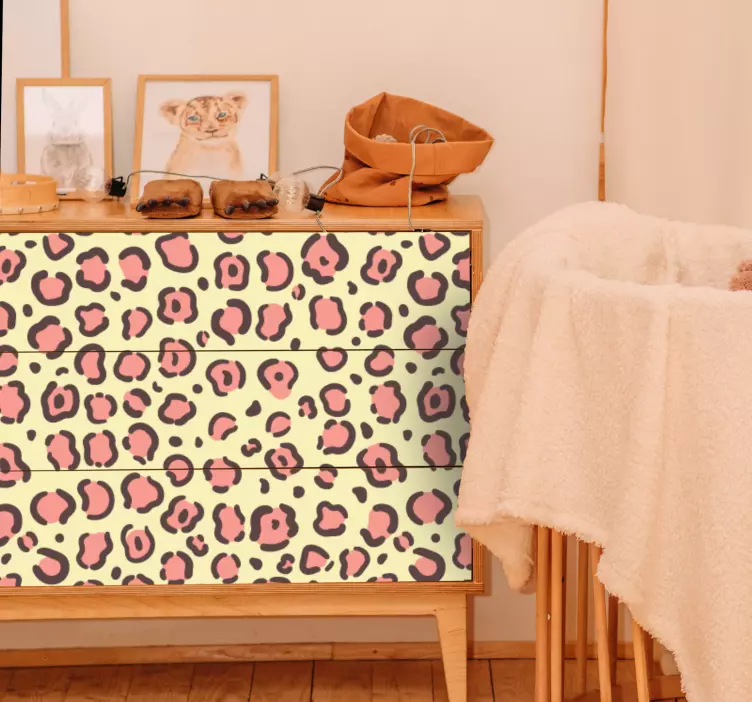 Transforma tus espacios con el vinilo para mueble textura de piel de leopardo, un diseño que evoca la majestuosidad de la naturaleza. Este mueble presenta un patrón sofisticado que imita la huella animal del leopardo, ideal para dar un toque salvaje y elegante a cualquier ambiente. Con su estampado en tonos rosa y rosado, este vinilo es perfecto para aquellos que desean añadir un estilo único y vibrante a sus muebles y lugares favoritos.