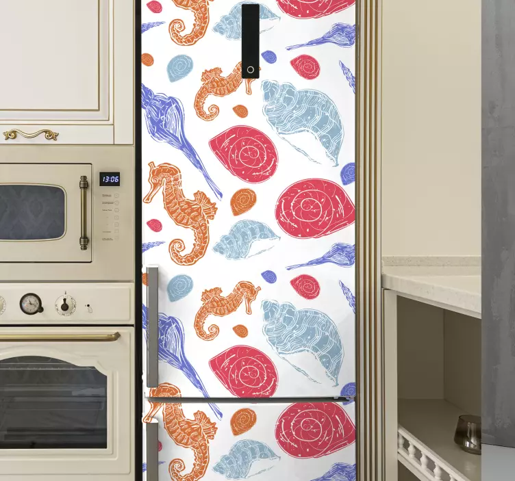 Vinilo para nevera caballito de mar y conchas
