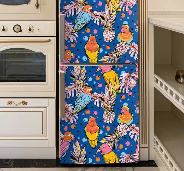Vinilo para nevera diseño de loros coloridos