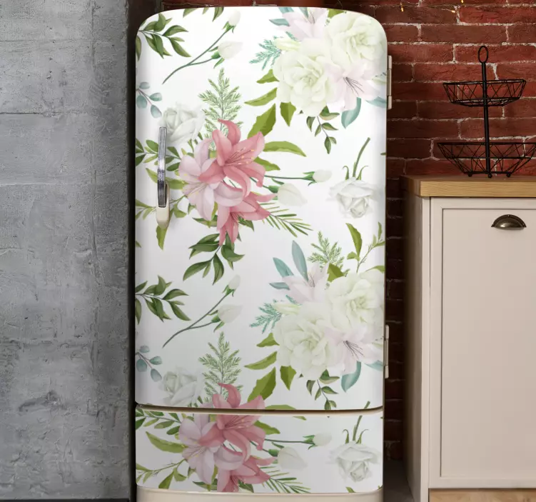 Referencia: A49541Con un vibrante patrón floral, este diseño realza la estética de los electrodomésticos de cocina. La elegante combinación de flores rosas y blancas junto con exuberante vegetación aporta una sensación refrescante al espacio, ideal para agregar encanto y sofisticación a cualquier entorno de cocina.