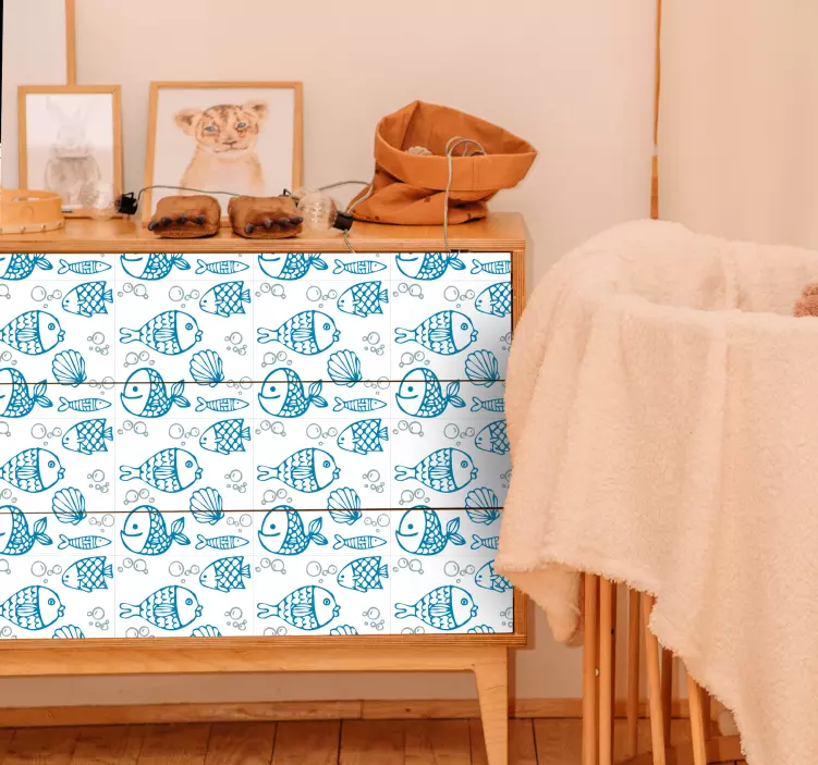 Transforma la habitación de tus niños con nuestro vinilo para nevera motivos de peces caprichosos. Este diseño encantador presenta un vibrante patrón de peces, submarinos y burbujas que evocan la vida marina, creando un ambiente divertido y caprichoso. Con sus dibujos coloridos y su estilo vistoso, este vinilo para nevera no solo decora, sino que también estimula la imaginación de los más pequeños, convirtiendo cualquier mueble en una obra de arte submarina.