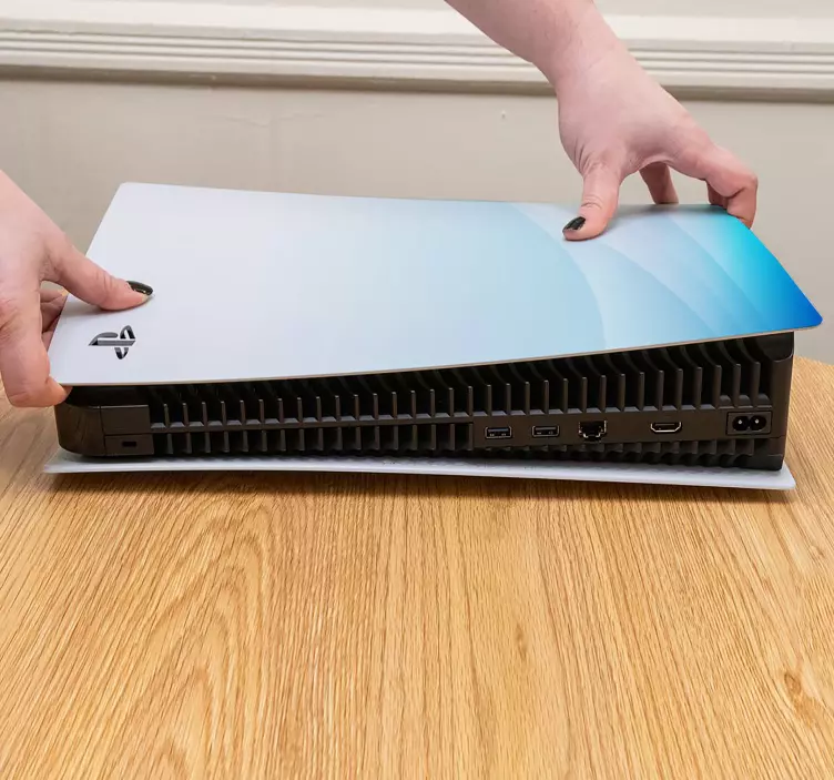 Aplicar el Vinilo PS5 vinilo ps5 funda gradiente azul es muy sencillo. Solo necesitas limpiar bien la superficie de tu consola y despegar el adhesivo para colocarlo con cuidado. ¡En pocos minutos tendrás tu PS5 luciendo espectacular!