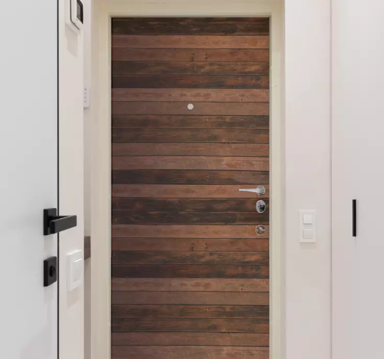 Descubre el encantador vinilo puerta acabado madera, una opción ideal para transformar cualquier puerta de tu hogar. Su diseño en tonos marrón presenta una disposición horizontal que imita tablones de madera natural, aportando una textura cálida y acogedora a tus espacios interiores. Perfecto para la entrada de tu casa, este adhesivo se convierte en un elemento decorativo que revitaliza el ambiente, haciendo que cada visita sea especial.