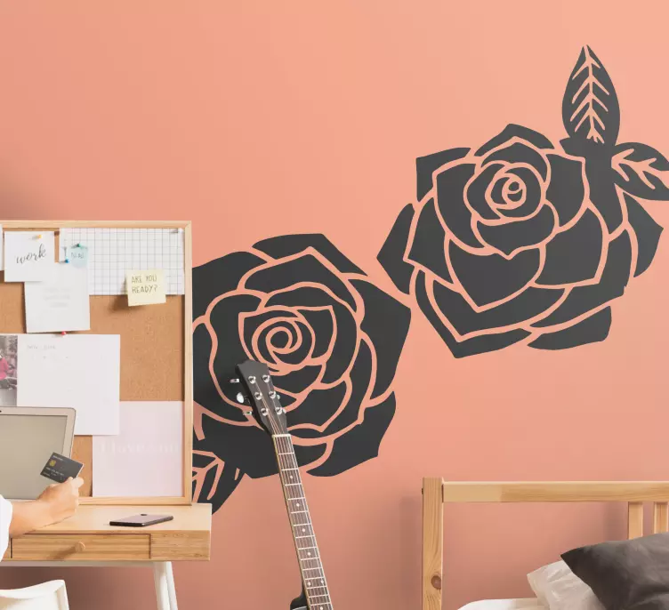 Descubre la elegancia de la Vinilo ramo de rosas chic, un diseño que fusiona la belleza floral con la sofisticación. Con una espectacular silueta de rosas y flores que evocan la naturaleza, este vinilo en tonos negros y verdes representa un estilo chic y moderno, ideal para dar vida a cualquier espacio con un toque de elegancia.
