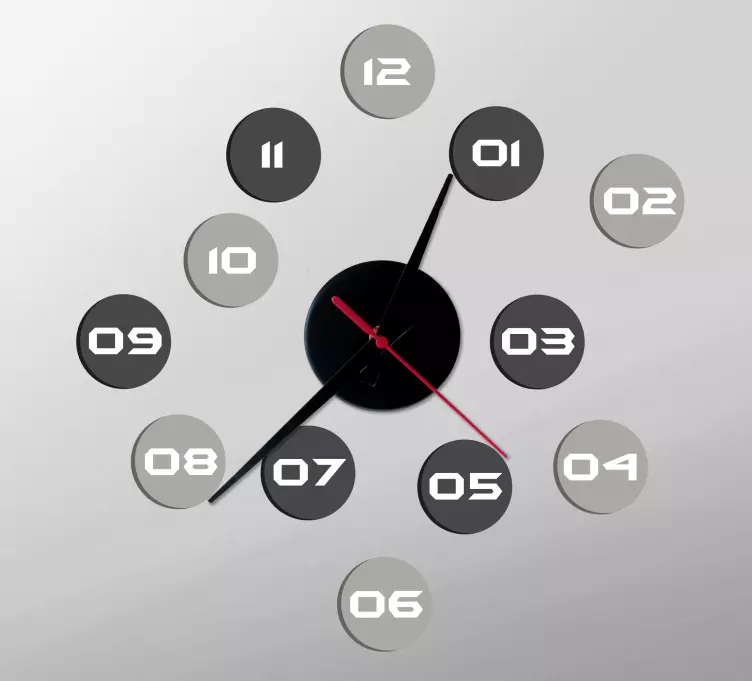 Descubre nuestro vinilo reloj reloj circular moderno, una pieza de diseño gráfico que transforma cualquier espacio. Con su estilo moderno, presenta un juego de círculos y números en un formato geométrico y minimalista. Este adhesivo no solo es estéticamente atractivo, sino que también permite visualizar la hora de manera clara y efectiva, convirtiéndose en un elemento decorativo funcional.
