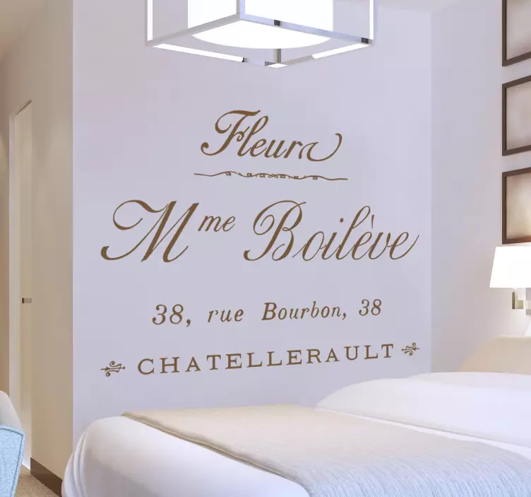 Vinilos decorativos basados en un texto de una antigua floristería francesa, ideales para darle un toque elegante a cualquier estancia de tu casa. Este original vinilo pared quedará estupendamente sobre las paredes de tu salón, comedor o habitación de matrimonio.