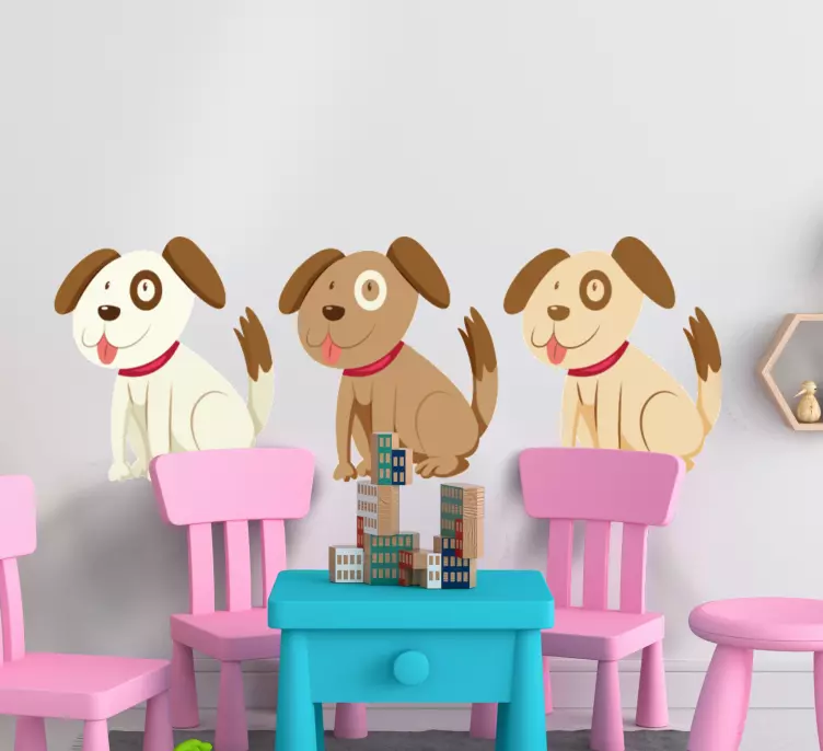 Referencia: A48962Un encantador trío de cachorros juguetones en estilo de caricatura, cada uno con características y expresiones únicas. Este diseño aporta una atmósfera alegre, perfecto para espacios infantiles, atrayendo a los amantes de las mascotas y creando un ambiente animado.